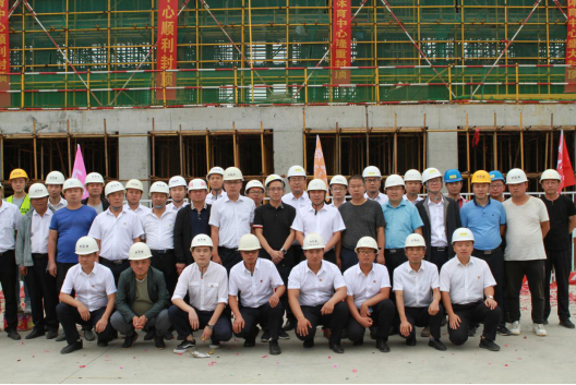 7月18日上午,延安大學新校區體育中心項目順利封頂。建設、監理、施工單位相關領導參加了活動。