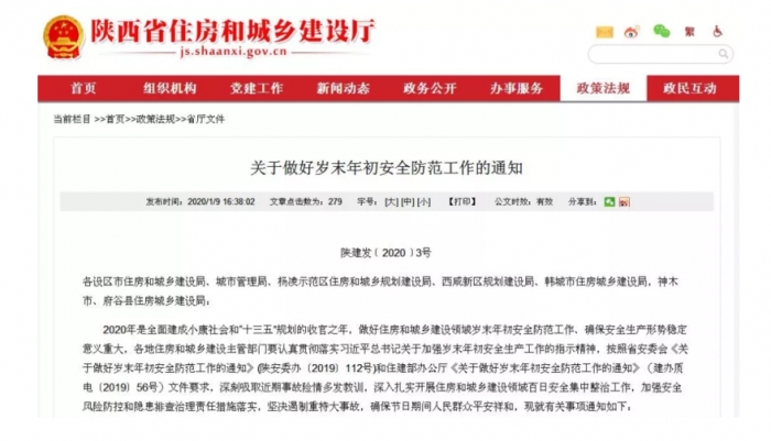 歲末年初歷來(lái)是安全生產(chǎn)工作關(guān)鍵時(shí)期。日前,陜西省住建廳印發(fā)通知,要求全省各地住房和城鄉(xiāng)建設(shè)主管部門認(rèn)真貫徹落實(shí)習(xí)近平總書(shū)記關(guān)于加強(qiáng)歲末年初安全生產(chǎn)工作的指示精神,按照省安委會(huì)《關(guān)于做好歲末年初安全防范工作的通知》和住建部辦公廳《關(guān)于做好歲末年初安全防范工作的通知》文件要求,深刻吸取近期事故險(xiǎn)情多發(fā)教訓(xùn),深入扎實(shí)開(kāi)展住房和城鄉(xiāng)建設(shè)領(lǐng)域百日安全集中整治工作,加強(qiáng)安全風(fēng)險(xiǎn)防控和隱患排查治理責(zé)任措施落實(shí),堅(jiān)決遏制重特大事故,確保節(jié)日期間人民群眾平安祥和。