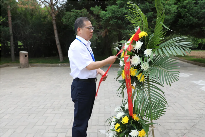 在勞山戰役烈士陵園,全體人員莊嚴肅立,向革命烈士默哀,向革命烈士敬獻花籃,行鞠躬禮并瞻仰了烈士陵園,向在勞山戰役英勇犧牲的革命烈士致以崇高的敬意。