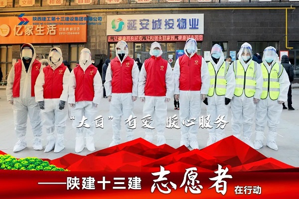 陜建十三建集團黨員先鋒隊和青年突擊隊組成的志愿者