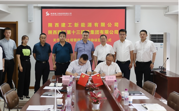 6月26日,集團與陜建新能源公司舉行混凝土塔筒項目簽約儀式。陜建新能源公司董事長李建飛,集團黨委書記、董事長卜國平致辭并鑒簽。陜建新能源公司副總經理劉偉程,集團總工程師、陜建(延安)新型建材公司董事長王弘起代表雙方簽約。