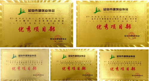 延安大學新校區體育中心項目、延安新區全民健身運動中心工程榮獲延安市建設優質工程“寶塔杯”獎;延安市南泥灣勞模工匠學院項目經理部、延安市新區信天游文創餐飲街項目經理部、伴山樾谷·芳菲里項目經理部、延安云計算數據中心項目(二期)項目經理部、寶塔區萬花前鎖崖租賃型保障房及棚戶區改造安置房一期項目經理部被評為“2022年度延安市建設工程優秀項目部”。
