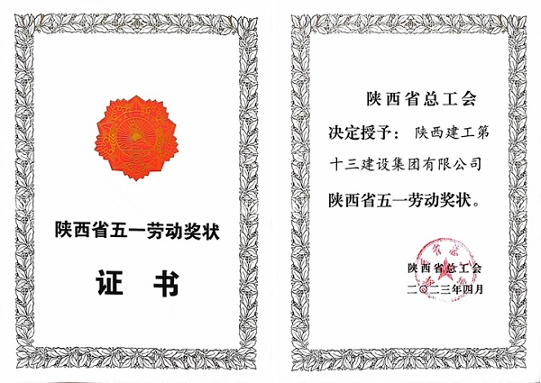 陜建十三建集團榮獲“陜西省五一勞動獎狀”