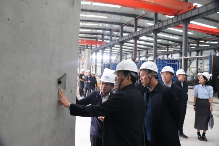 集團(tuán)總工程師、新型建材黨支部書記、董事長(zhǎng)王弘起帶領(lǐng)與會(huì)人員觀看了《預(yù)制構(gòu)件三維動(dòng)畫》工藝宣傳片,參觀了裝配式PC構(gòu)件生產(chǎn)流水線、機(jī)電預(yù)制安裝生產(chǎn)車間,詳細(xì)介紹了風(fēng)電塔筒混凝土管片生產(chǎn)流程。參觀人員詢問(wèn)裝配式構(gòu)件的生產(chǎn)工藝和質(zhì)量控制情況,對(duì)裝配式建筑有了進(jìn)一步的了解,對(duì)集團(tuán)積極推進(jìn)裝配式發(fā)展方面取得的成績(jī)給予了充分肯定。