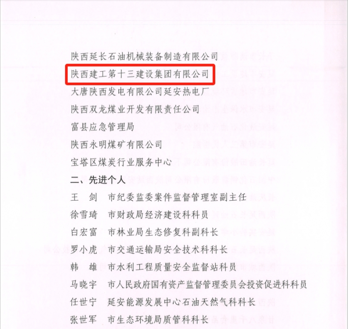 近日,延安市安全生產委員會表彰了2022年全市安全生產工作先進集體和先進個人,陜建十三建集團獲評延安市安全生產先進集體,這是集團連續四年榮獲全市安全生產先進集體表彰。