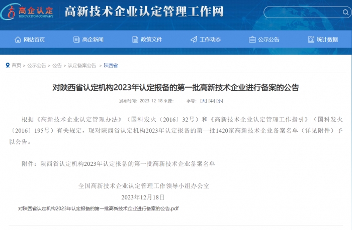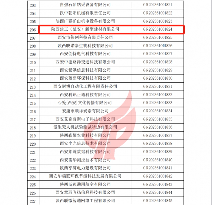 近日,全國高新技術產業企業認定管理工作領導小組辦公室公布了2023年陜西省認定的第一批高新技術企業名單,集團新型建材產業基地【陜西建工(延安)新型建材有限公司】通過國家級高新技術企業認定。